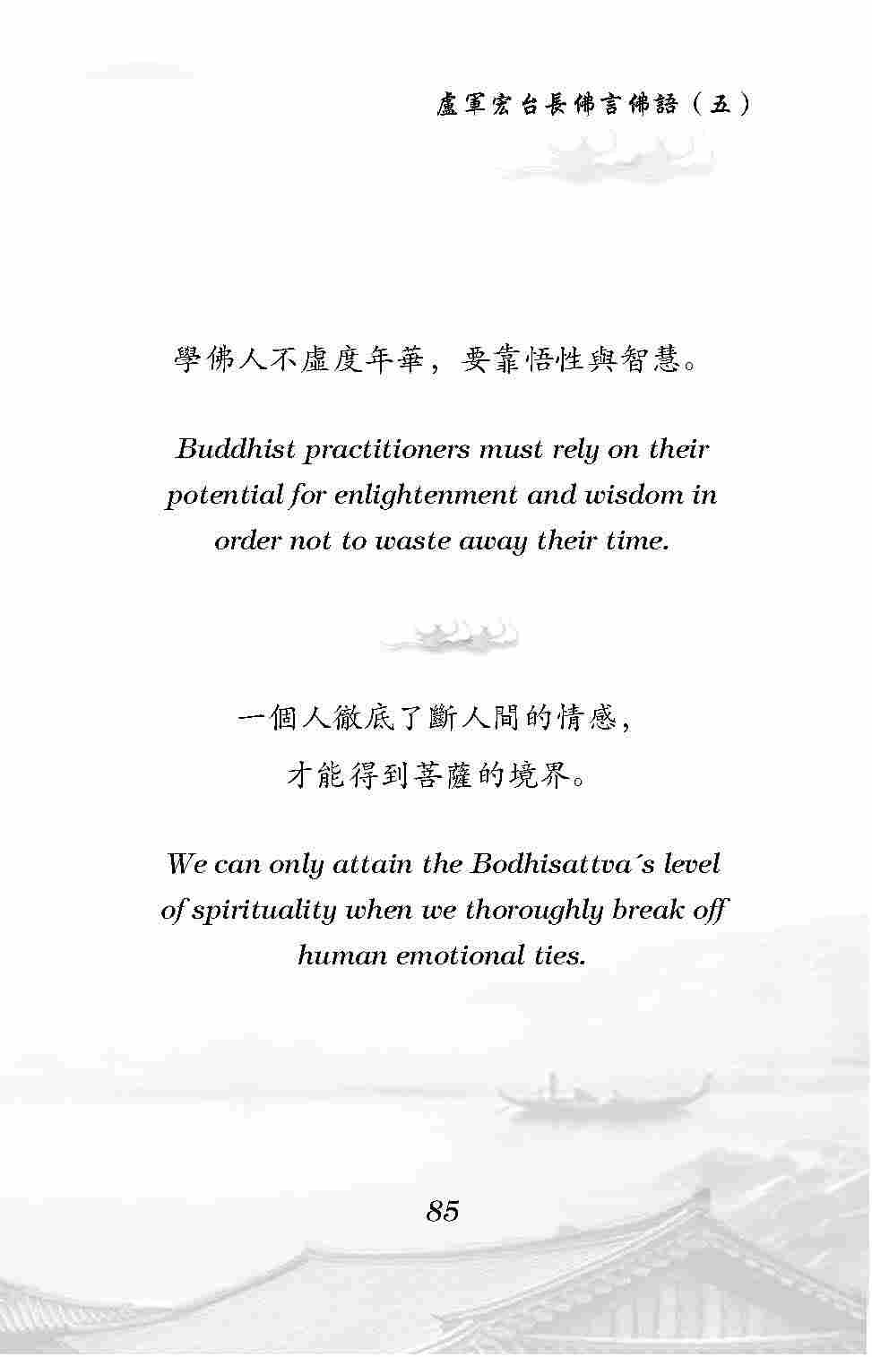 We can only attain the Bodhisattva's level of spirituality when we thoroughly break off human emotional ties.